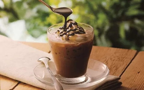アイスココアに香り高いコーヒーゼリーとバニラアイスを添えて