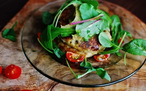 6.焼けた5を皿に盛り、上にアボカドやミニトマトをのせ(塩と胡椒を少々ふると良い)一番上にベビーリーフなどのサラダ野菜をのせて仕上にオリーブオイルをまわしかけてかんせい!