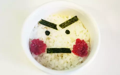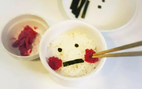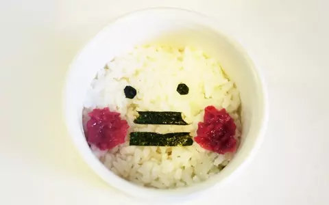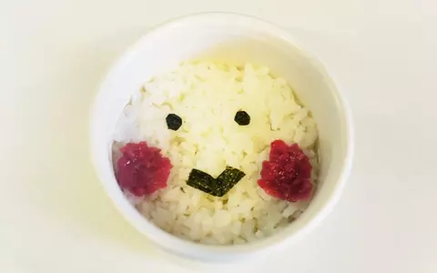 パーツの位置が決まったら梅干しもトッピング。これだけでかわいい感じの顔が完成☆