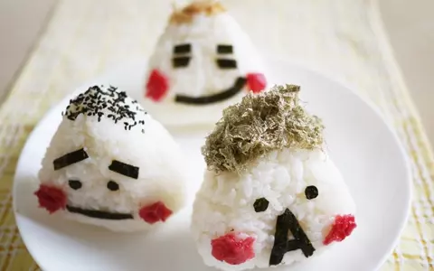 おにぎりの場合は頭の部分もアレンジすると楽しいよ。胡麻、とろろ昆布、鰹節などをのせるだけ。