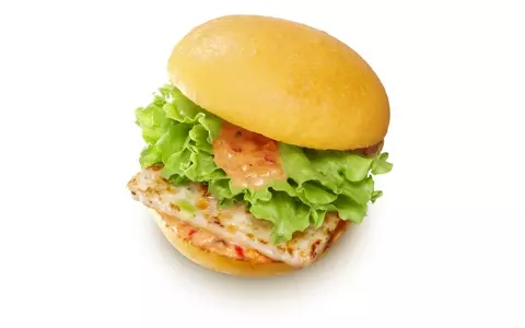 低カロリーの秘密は、鶏ムネ肉のパティにダイスカットした人参・レンコン・ゴボウ・筍・枝豆加えたパティ。ヘルシーで歯ごたえもあるので満腹感を得ることができる。