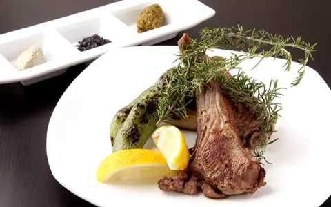 ▼柔らかい仔羊背肉のグリル 国産レモン添え