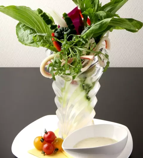 ▼“活け花”に見立てたオーガニック野菜のバーニャカウダ