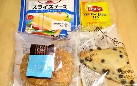 使った材料はチョコチップスコーン、Wクリームのシュークリーム、スライスチーズ、紅茶の4つだけ。どれもコンビニにすぐに手に入るもの。では作っていこう。