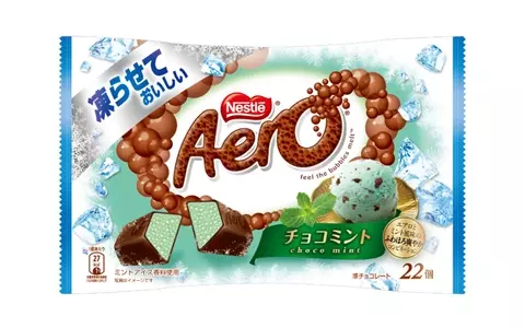 軽い食感に涼感あふれるミントフレーバーを加えた「ネスレ エアロ ミニ 凍らせておいしい チョコミント」。