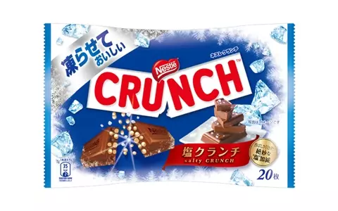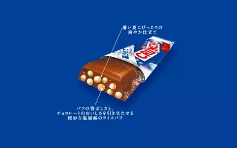チョコレートのおいしさを引き立てる「塩」で仕立てた香ばしいライスパフをたっぷり投入した「ネスレ クランチ 凍らせておいしい 塩クランチ」。