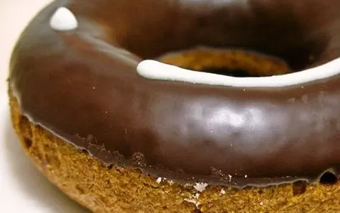 ほんのりビター感もある甘いチョコレートが控えめなドーナツ生地の甘さを補ってくれる。