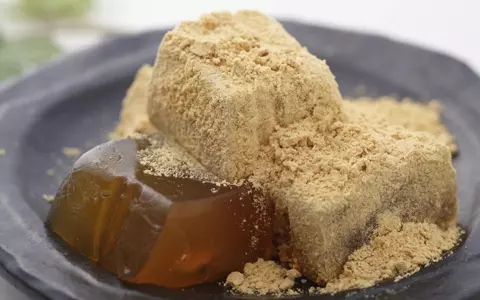 わらび餅と季節の和菓子で人気の「京 嵯峨野 竹路庵」からは、のどごしの良さにこだわったわらび餅が登場。香ばしいきなこをたっぷりかけてお召し上がりください。こくのあるおいしさの黒糖わらび餅も人気だ。