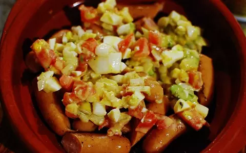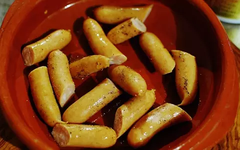 2.耐熱容器に薄くオリーブオイルをぬり、ソーセージを食べやすい大きさに切って入れる。