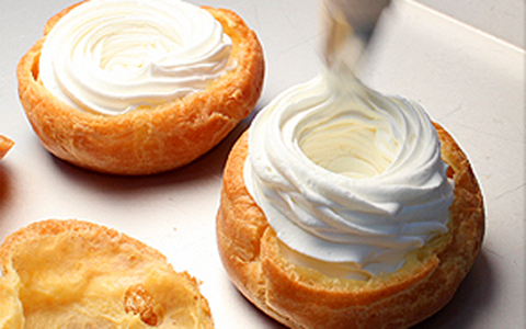 1.いまだかつて味わったことのないミルク感まず一口目。はじめに驚くのはシュー生地の柔らかさだ。口にした瞬間溶けるのではないか…というふんわり感に、濃厚な卵のやさしい味が広がる。そして肝心のクリームがすごい。この乳味感としっとり長く続く余韻は、乳脂肪を超微粒子化し、表面積を約40倍にしたことで生まれているとか。バニラビーンズやバニラエッセンスを一切使っていない、ミルク本来の味を最大限に味わえる。