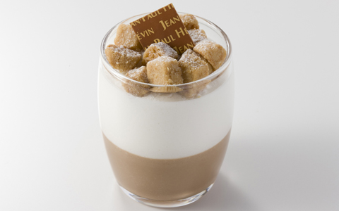 ライチピューレを使用したムースとジャスミンとショコラで風味付けしたクレームアングレーズを組み合わせた。さらにシュトロイゼル(そぼろ状のクッキー生地)を飾り付け、見た目にも食感にもアクセントをプラス。