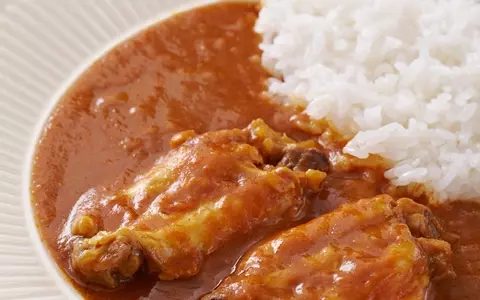 「とろとろ骨付きチキンとトマトのカレー」は、上質の骨付きチキンを九州産の野菜と果物を一緒に、お箸で簡単に切れるくらい柔らかく煮込んだ少しスパイシーなカレー。化学調味料には出せない、天然のスパイスの余韻が残る。