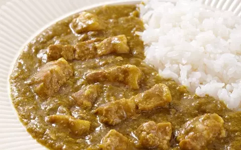 「ころころ角切りポークとほうれん草のカレー」は、食べ応え十分の角切りポークを九州産の野菜と果物と一緒にじっくり煮込んだマイルドなカレー。口の中にじんわり広がる、刺激を抑えた程良い辛さとやさしい奥深い味わいが特徴。