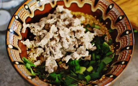 2.豚肉は色が変わるまで茹でて冷水にとり、しっかり水気をキッチンペーパーなどでとったら細かく切る。