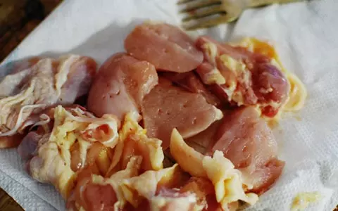 1、鶏肉はそれぞれ食べやすい大きさに切り、味が染みやすい様にフォークで全体に穴をあけておく。全体に塩を少々ふっておく。