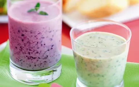 左:ブルーベリーヨーグルトスムージー 右:小松菜入り豆乳ジュース
