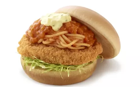 北海道・釧路発祥のご当地メニュー“スパカツ”をハンバーガーに。シャキシャキのキャベツの千切りの上に、豚ヒレ肉を使った厚めのカツとトマトスパゲッティをのせ、オリジナルのミートソースとタルタルソースを加えた。ジューシーでサクっと揚げたカツと、ミートソースがたっぷりのったスパゲッティをはさんだボリューム満点の商品。