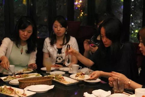 友人や姉妹同士の参加で、女子会のような雰囲気。美味しい料理を写真におさめる姿もちらほら。