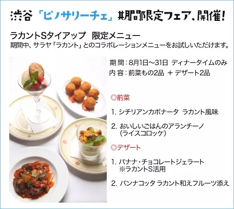 会場となる渋谷の地中海イタリアン「ピノサリーチェ」さんに特別にご用意いただくのは、この日だけの限定メニュー。低カロリーで美味しい、そしてとってもお得なデザートビュッフェをご堪能ください。