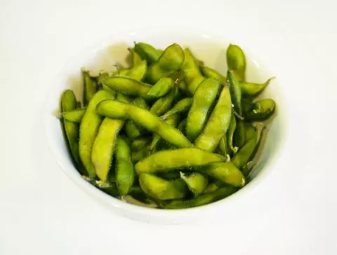 2、枝豆は収穫後または購入後、時間の経過と共に味が落ちやすいので、早めに茹でます。鍋に1Lの熱湯を沸かしたら大さじ2杯程度の塩を加えて、枝豆を入れ、約4分茹でます。
