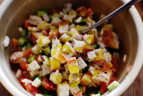 2、くり抜いたトマトの入ったボウルに★を入れ、全体に混ざるようよくあえる。