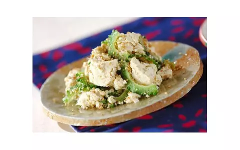 (c) E・レシピゴーヤはゆでると苦みが抑えられる。豆腐のタンパク質も加わりバランスがよい一品。さっぱり食べられるから、食欲のない日でも。