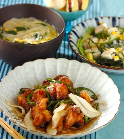 今日の献立は「鶏の南蛮漬け」と「素麺入りかきたま汁」