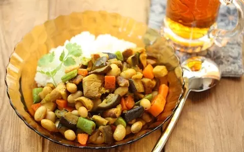 面倒そうでいて、実は簡単な大豆の戻し方と応用レシピを紹介。野菜とあわせてスパイスカレー炒めを作り、ごはんにのせれば立派なメインの出来上がり。手抜きしつつ、美容と健康にもいいとされる大豆をしっかり摂れる一品です。