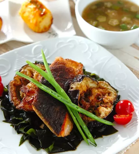 米ナスと鮭のソテー