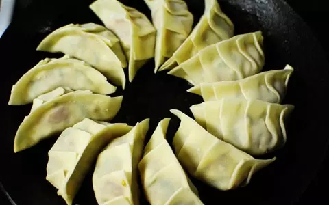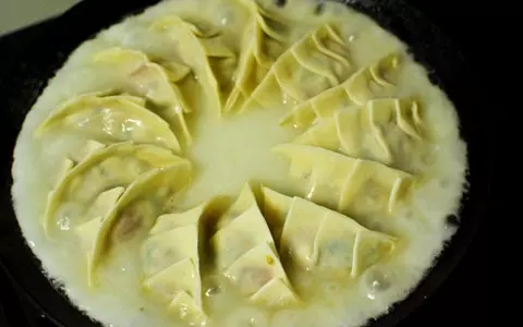 4.中火で熱し、餃子の底にきつね色の焼き色がついたらよく混ぜ合わせた☆を一気に流しいれ、蓋をする