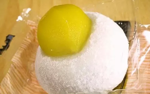 とにかくインパクトが凄い! 大福の上に大きな栗が一粒どーんと構えている。見ているだけでわくわくしてくる大福だ。