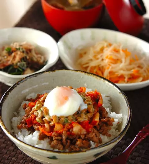 今日の献立はボリューム追加「豚肉納豆キムチ丼」
