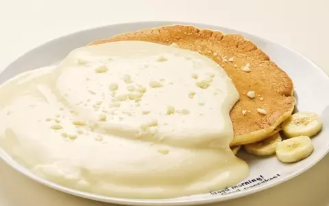 名物は真っ白なオリジナルナッツソースとパンケーキにサンドされたバナナでいただくナッツナッツパンケーキ。