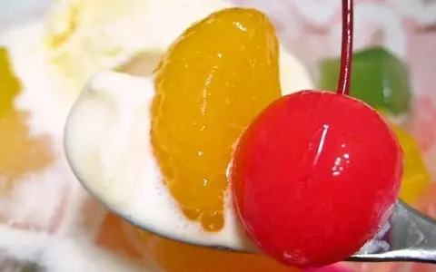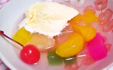 もうひとつはフルーツポンチのバニラアイスのせ。甘いものが合うカクテルならではの甘いおつまみ風デザートだ。これはフルーツ缶のシロップを切って代わりにカクテルをフルーツに注いだ後にバニラアイスをのせれば完成。