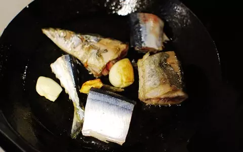 3.フライパンに★をいれ弱火にかけ、香りが立ってきたらサンマをいれて両面を焼く。全体に塩、胡椒をする。