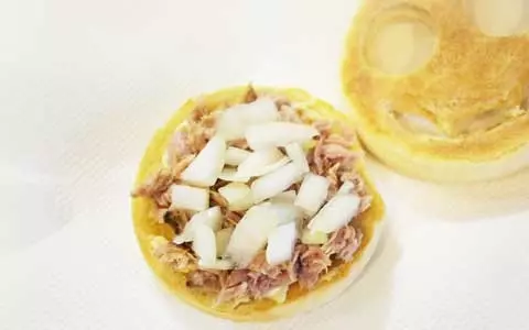 マヨネーズをぬり、ツナと玉葱をのせます。