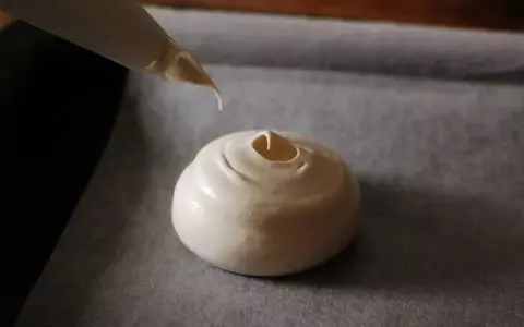 3、メレンゲを絞り袋に入れ、オーブンシートの上に直径4cmほどの大きさに絞りだす。