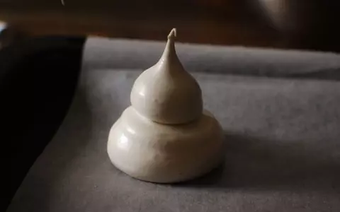 4、さらにその上に小さめに搾り出し、先を尖らせるようにする。これをたくさん作る。(他にも、色々好きな形に搾り出してもOK)