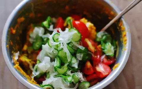 7、食べる直前に4に★をいれ、さらに粗みじん切りしたくるみもいれてよく和える。
