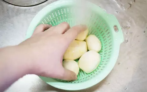 1.では、早速作ってみよう。生の里芋を使う場合は皮を厚めにむいて塩を全体にまぶします。ぬめりが出てきたら水でよく洗います。(冷凍の里芋を使う場合は工程1と2は飛ばしてください)