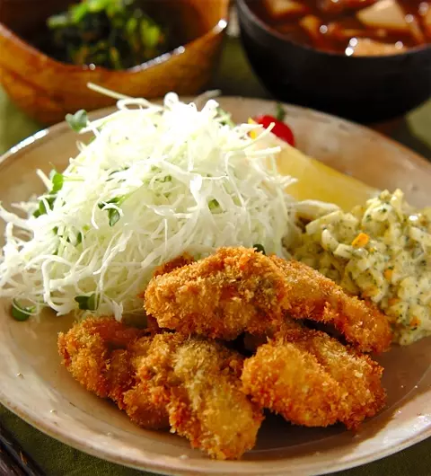 今日の献立は旬の味覚!ジューシー「サクサクカキフライ」