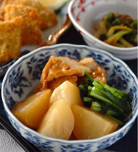 煮物に少しトロミをつける事で冷めにくく、見た目の上品さもUP。豚汁も具だくさんで食べごたえもバッチリ。