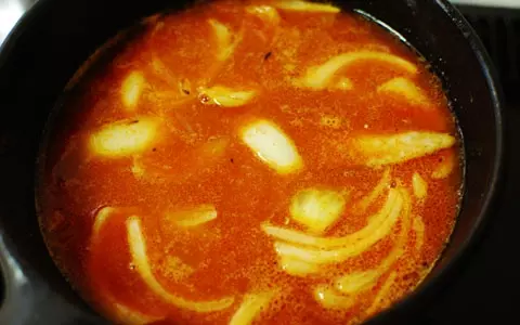 3、続いて水をいれ、沸騰したら★を溶かしいれよく混ぜる。
