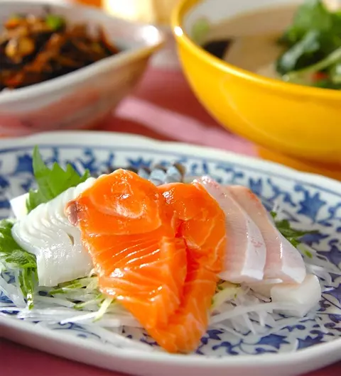 今日の献立は「お造り盛り合わせ」を含めた全4品。