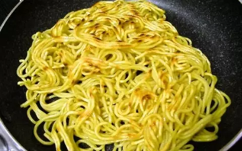 作り方は本当に簡単。焼きそば麺をこんがり焼き目がつくまでフライパンで炒め、この間に中華丼の素を温めておくだけ。ここで、麺は少しカリカリになるまで炒めるのがポイント!