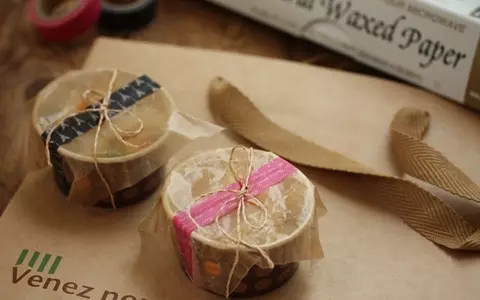 2012年12月12日 18:00用意するものはワックスペーパー、マスキングテープ、麻ひもなどのひも。カップより大きめに切ったワックスペーパーを、マスキングテープでとめます。上からひもを結んであげれば、おめかしした持ち寄り料理の完成。