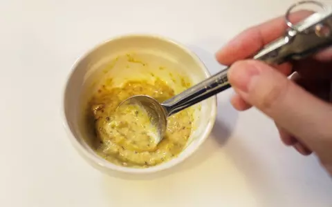 2.粒マスタード、味噌、加糖ヨーグルトを混ぜてソースは完成。