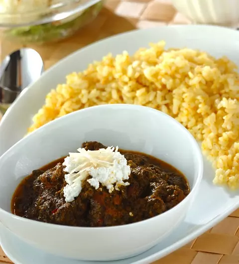 風邪予防、美肌効果などに効果があるホウレン草を使ったカレーに、ニンジンの甘みが広がるライスを添えて。
