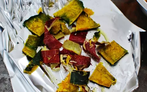 こうやって、アルミホイルに広げて、塩・胡椒・オリーブオイルをまわしかけてトースターで2~3分焼けば、おつまみにぴったりの楽しみな1品に♪ 捨てることなし、簡単でお酒に合う「クリーミー栗きんとん」、お正月にあなたもトライしてみて。