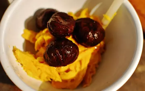 南瓜のきれいな黄色が、おめでたい感じですね。クリームチーズを入れると、まろやかでリッチな感じに。そしてラム酒の風味がポイント! ワインやウイスキーにもよく合う栗きんとん。いつもの栗きんとんもいいけど、今年はこんな洋風栗きんとんに挑戦してみてはいかが?